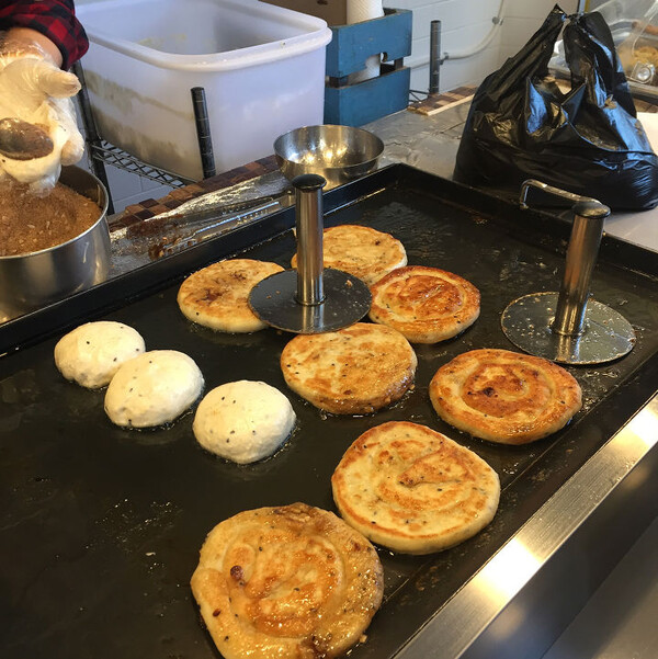 Hotteok là một loại bánh pancake tròn, bên trong là nhân đường nâu, quế và các loại hạt. Bánh được rán trên chảo dầu nóng cho đến khi vỏ ngoài giòn tan còn nhân bên trong thì tan chảy thành một dòng si-rô ngọt lịm. Cẩn thận kẻo bỏng miệng nhé!